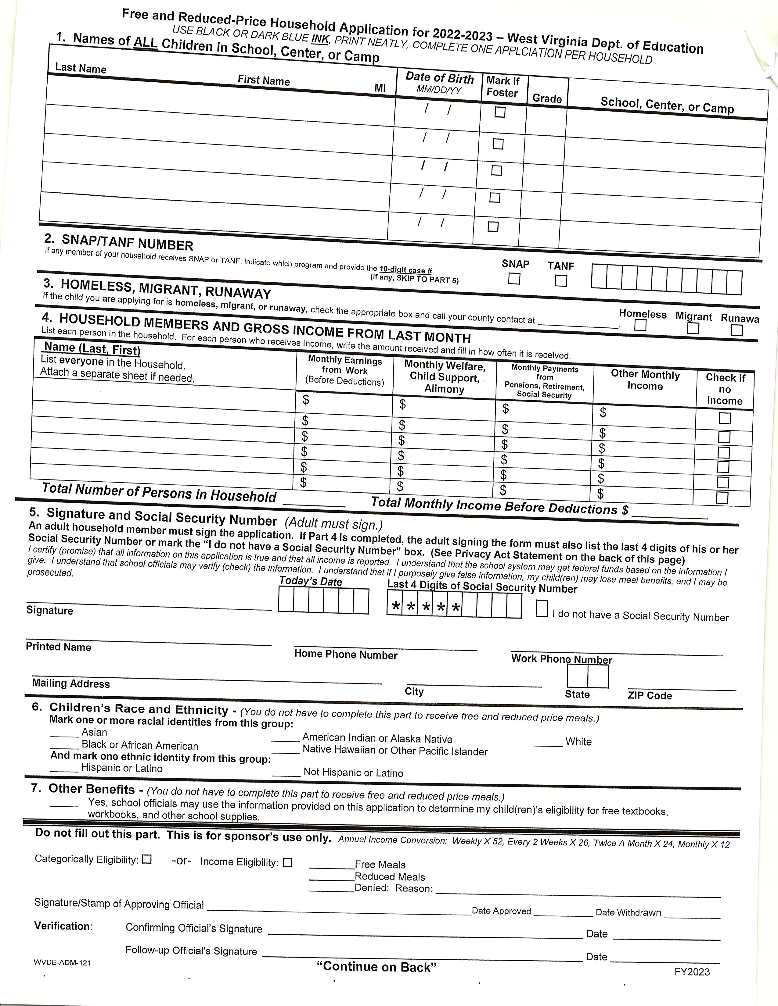 Free and Reduced Application